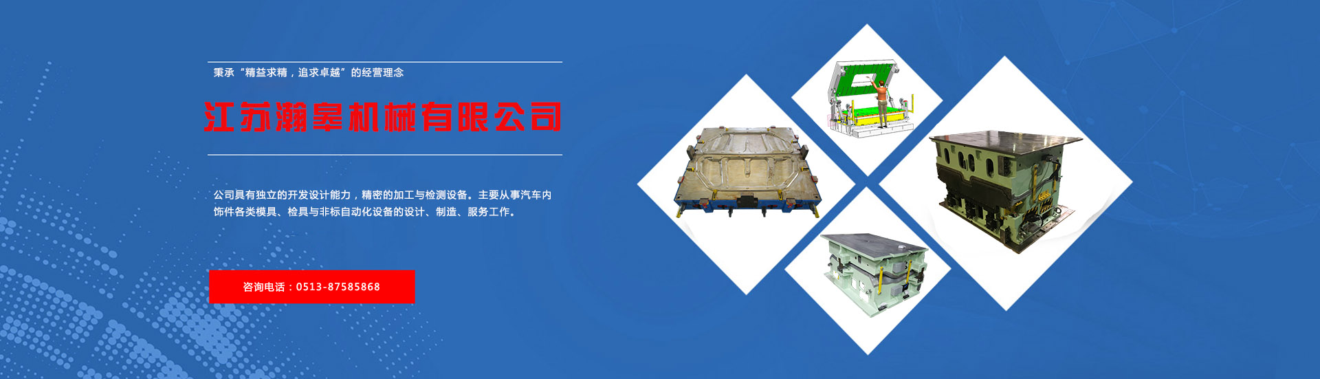 江蘇瀚皋機(jī)械有限公司座落于江蘇省如皋市如城鎮(zhèn)豐源路166號(hào)。地理位置優(yōu)越,交通便利,距G15高速如皋出口3km,距火車(chē)站3km;公司占地面積26,666 ㎡。 公司現(xiàn)有員工215人,每月模具產(chǎn)能30-40副,檢具12-20副,工裝設(shè)備15-20套。 公司具有獨(dú)立的開(kāi)發(fā)設(shè)計(jì)能力,精密的加工與檢測(cè)設(shè)備。主要從事汽車(chē)內(nèi)飾件各類(lèi)模具、檢具與非標(biāo)自動(dòng)化設(shè)備的設(shè)計(jì)、制造、服務(wù)工作。 |
